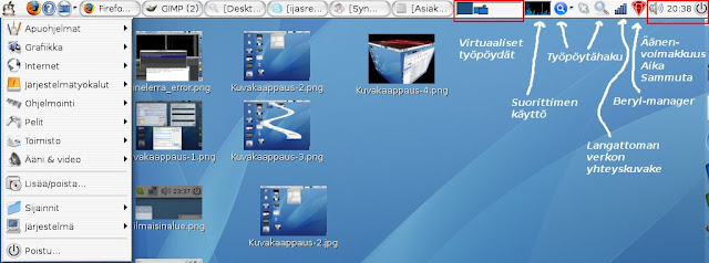 Opettajaa hyödyttävinä asioina voisi mainita mm. Beryl-ikkunointimanagerin käyttö (en ole vielä asentanut uusinta uutta, Compiz Fusionia, siinä ominaisuuksia vaikutti olevan vielä enemmän). Miltä kuulostaa mahdollisuus havainnollistaa opetusta piirtelemällä? Berylin annotate-plugin tarjoaa sen mahdollisuuden ja kuulemma Windowsillekin jotain vastaavaa löytyy. Myös kuvakaappauksen ottaminen itse määritellyltä alueelta ei ole pöllömpää. Säästää aikaa, kun ei tarvitse jälkeenpäin rajata kuvankäsittelyohjelmalla.